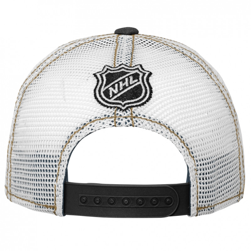 Parádní dětská kšiltovka NHL týmu Vegas Golden Knights od značky Fanatics. Kšiltovka Vegas Golden Knights v černo bílém provedení. Modrý kšilt a přední strana na které je logo s nápisem Vegas Golden Knights a v pozadí překřížené hokejky. Druhá půlka čepice je bílá síťka a vzadu nastavitelný pásek a nad ním vyšité logo NHL. Parádní dětská kšiltovka která potěší každého malého fanouška týmu Vegas Golden Knights.