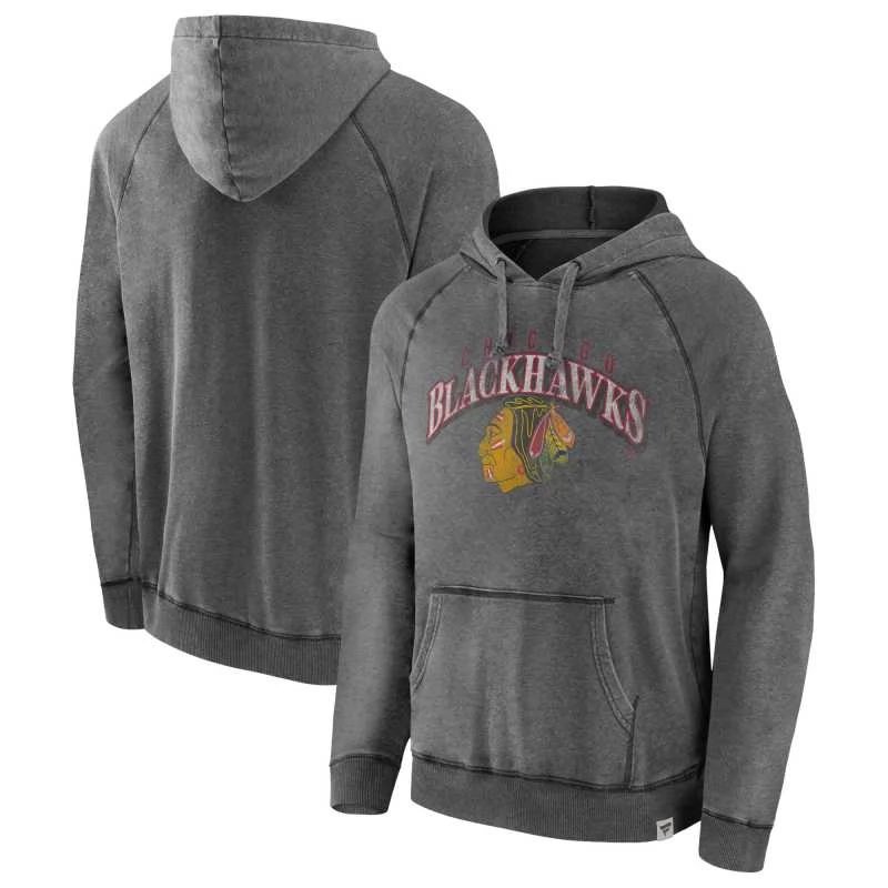 Mikina Chicago Blackhawks True Classics Washed PulloverParádní retro styl mikina Chicago Blackhawks v šedém provedení. Mikina působí ošoupaným dojmem, velký ošoupaný motiv na hrudi. Klokaní kapsa na břiše.
