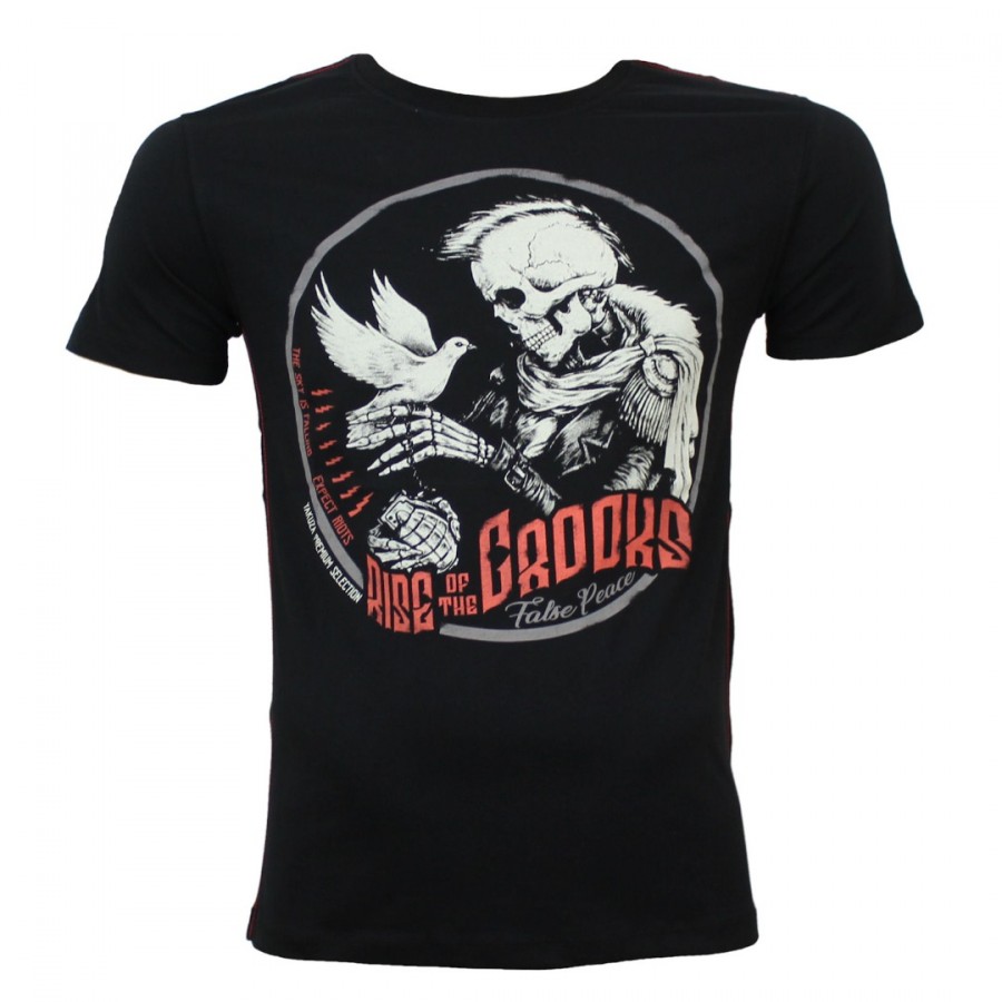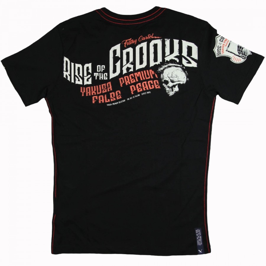 Stylové pánské tričko v černé barvě od značky Yakuza Premium s krátkým rukávem. Tričko užšího střihu s velkým potiskem kostry s nápisem Rise Of The Crooks. Vzadu na zádech stylový nápis Rise Of The Crooks s malou lebkou. Tričko z měkké a příjemné bavlny dodá Vašemu tělu pocit pohodlí a vysoký komfort. Pokud si nejste jistý velikostí volte o číslo větší. Tričko Yakuza Premium vhodné pro každodenní nošení a pro všechny milovníky rebelských a streetových značek.