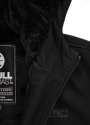 Pánská softshellová zimní bunda z kolekce PitBull West Coast - MIDWAY je bunda klasického sportovního střihu, která je vyrobena ze slabší, měkké, syntetické tkaniny s vodotěsnou a větruvzdornou membránou. Bunda má kapuci, kterou lze stáhnout pomocí tkanic a vysoký stojatý límec chránící před větrem, deštěm a chladem. Spodní část bundy a rukávy jsou ukončeny do pružného lemu. Bunda má dvě klasické kapsy na bocích se zipy, všechny zipy jsou vodotěsné a na předním díle na hrudi je logo PitBull. Bunda je zateplena měkkým, jemným, umělým kožíškem.